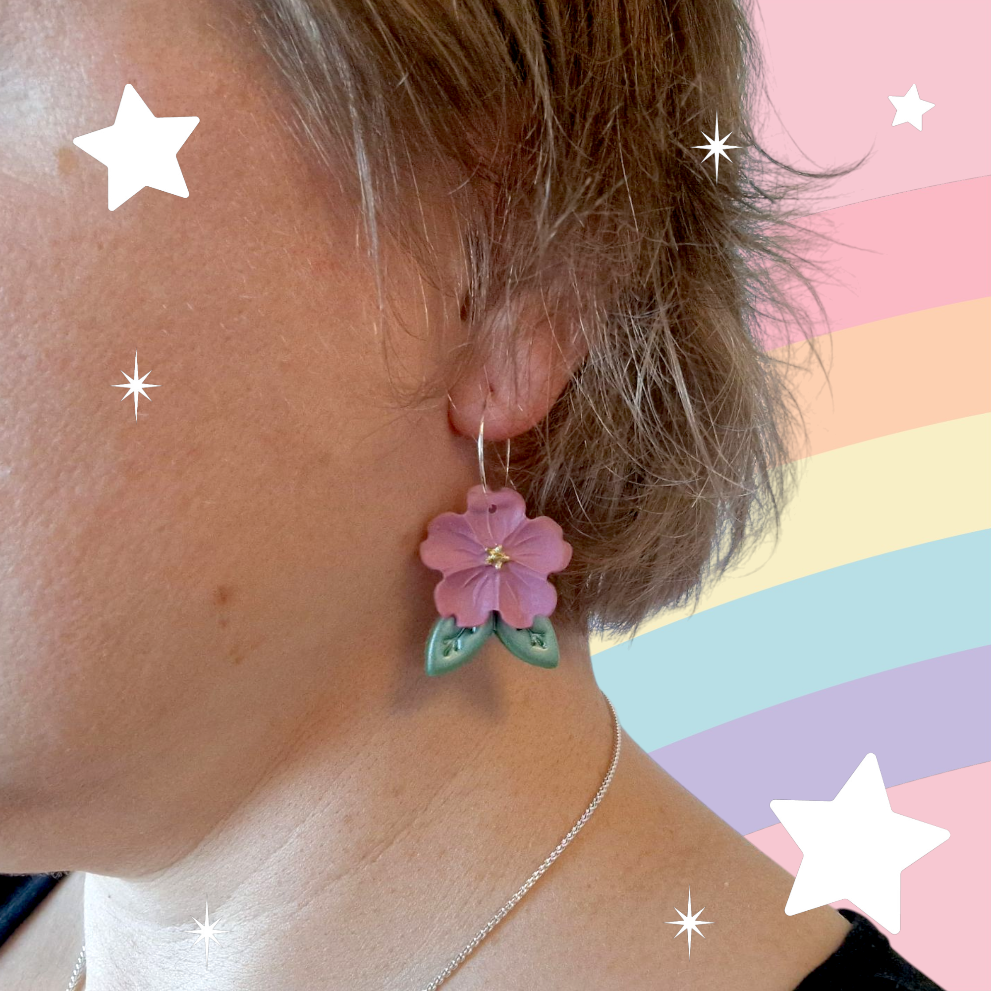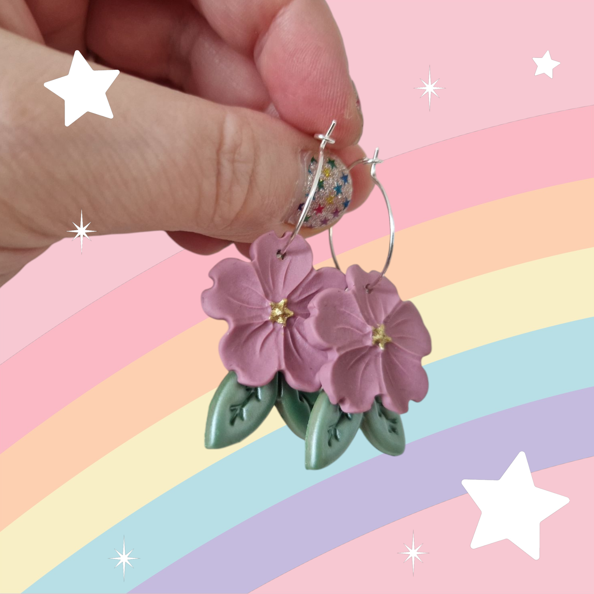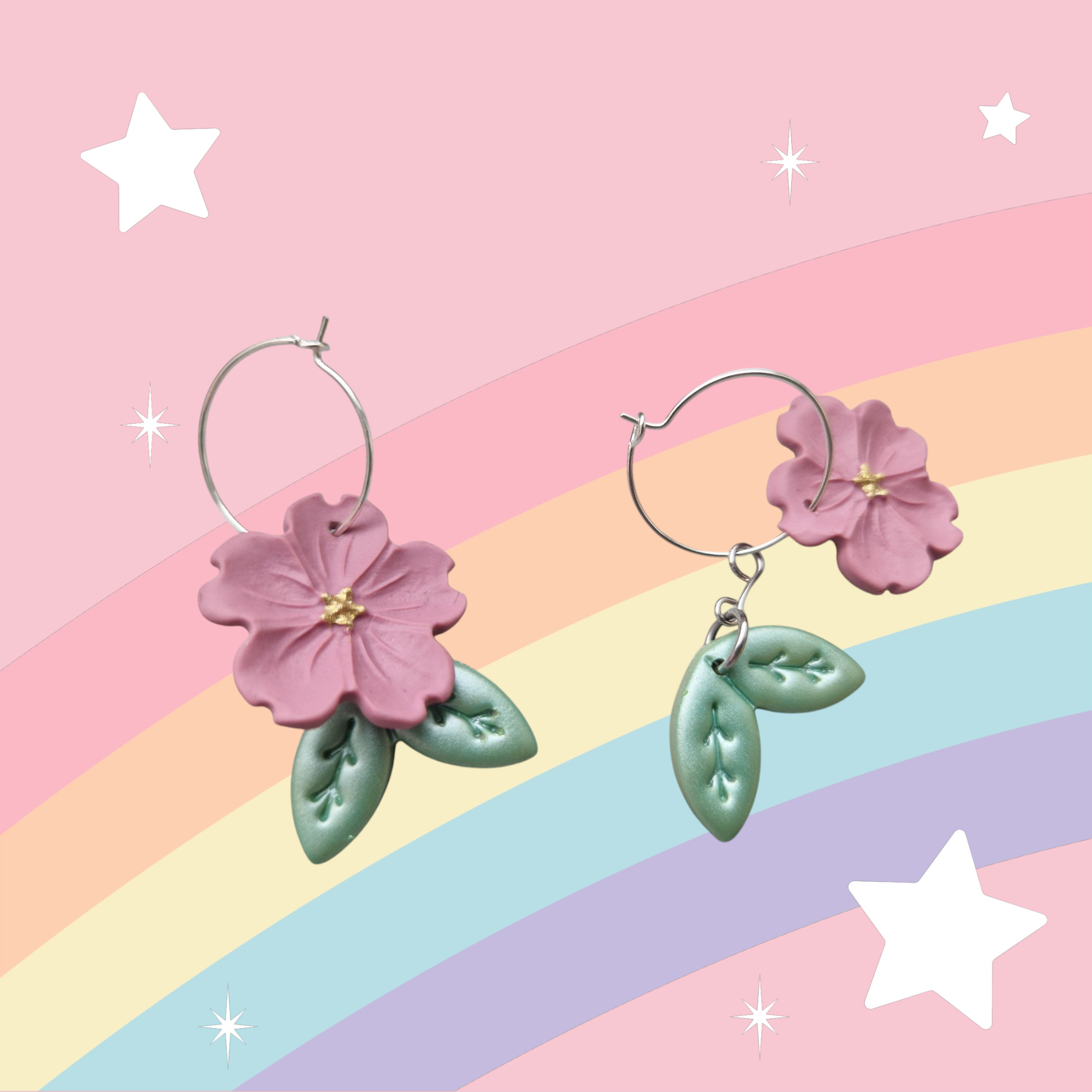 Ringar, 20 mm, av rostfritt stål med rosa blommor och gröna blad.