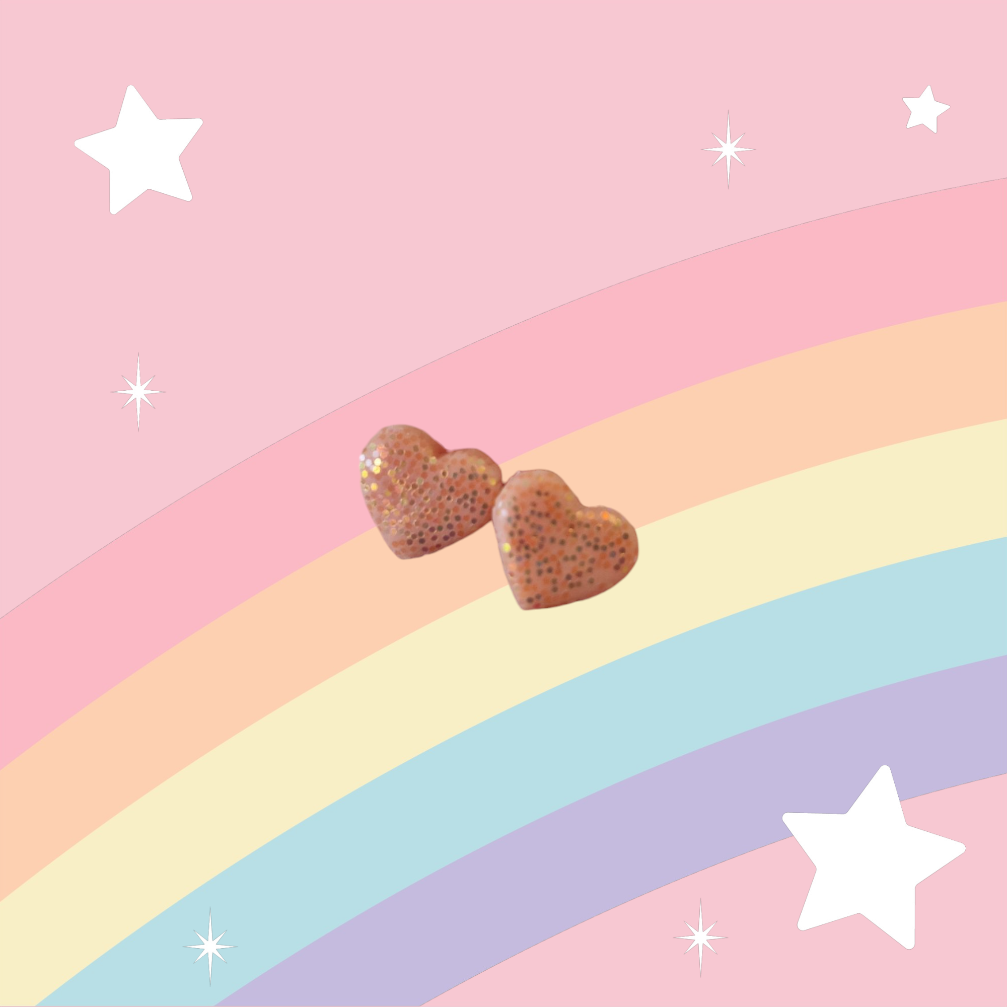 Små glittriga hjärtan finns även i ett exemplar aprikosfärgade. Bild 2 visar storleksjämförelse av modellerna, detta är den minsta varianten.
